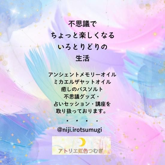地球上にあるあらゆる素材の中で神様や高次元の存在が好きな素材ってご存知ですか? それは「木」です! ワンドの素材はいろんなものがありますが、「木」でできたワンドは特別なんです。 魔法の杖(ワンド)は、古来より、魔女アイテムとしてヒーリングなどで使われています。 自然界のエネルギーを宿すため、素材もとても大切です。 木… 大地とつながり、安定と生命力を強化、神様や高次元の存在に好かれる素材 クリスタル… 先端の石がエネルギーの“フォーカス”を担い、波動を拡張 パワーストーン付き… そのワンドの個性を方向付け 金属(銅や真鍮)… 電導率が高く、エネルギーを増幅 素材は、自然由来のものを選ぶとより◎! これ以外にも何か取り入れたいものがアイデアとして浮かぶかもしれません あなたの魂のワンドデザインセッションから始めさせていただきます! 私の方でリーディング ◎霊視*今のあなたの心の鏡 ◎生年月日からわかるあなたの性格・運命・癖 (占星術・ヒューマンデザイン・四柱推命) ◎霊視タロット ◎波動読み いろんなワンドがありますが、当店では自分の内なる神聖さを思い出すという意味も含め「魂ワンド」を創ってきました! 制作してみると分かるのが、相棒のような存在なんです サポート存在でもあるし、守り神でもある 1人で不安な時、焦っている時、自分らしさを失った時、安心感を得たい時、 かなり心強い存在。 何かに似ている…天使みたいですよね。 2023年に大天使ミカエルのアンシェントメモリーオイルを作らせていただき、天使との絆を深めてまいりましたので、今回は天使のワンドを作る内容にしています。 (もちろん、妖精や星もOK) 私は、自分用に大天使ミカエルと大天使ラファエルのワンドを作りました。 隣に置いて寝ると安心感で癒されます。 いろんな創り方がありますが、 当店で作っているものに近いもので、キットを用意したいと思います。 大まかにこちらでご用意しますが、オリジナリティを出したい方は、買い足してもらえたらと思います。 特にパワーストーンは個性が出ると思います。 <内容> 初回…天使やあなたの魂の使命をみつつ、オーラ視、オーラの意味、色の意味をお話します。 どんなワンドを作るのかイメージします。 2回目…木を削る 天使のメッセージ 天使のメッセージはどんなものなのか、地球の土台ワーク、地球に生まれ身体を持って何をしたいのか、癒しの木を触りながら、心の土台を整えていきます。 3回目…羊毛フェルト 天使のヴィジョン 五感 天使と遊ぶ フェルトの癒しを触りながら、カラフルな色でのヴィジョンワーク イメージ具現化。思ったものが現実になるワーク 4回目…パワーストーンチャーム 天使の光 キラキラオーラワーク 光るチャーム、美しいパワーストーンからエネルギーを感じ、キラキラのオーラを身に纏い、素晴らしい「気」を身にまとう。 望む現実を引き寄せ、波動の低い出来事と出会わない。 初回の講座の後、貴方の天使のブレンド(5ml)を制作させていただきます! 私の描いた天使のイメージイラストカードもプレゼント! 天使のアンシェントメモリーオイルと共に使っていただくのがオススメです。 (妖精の鍵のイラストも描きたいなと思います) 詳しくはこちら ※ワンドの使い方については行っておりません。ワンドの使い方を知っている方向けの講座となります。 *********************** ZOOMで2時間を4回になります。ご参加の方のご都合の良い時に開催できたらと考えています (分割も承っています) 特典:貴方の天使ブレンド、天使のイメージイラストカードプレゼント 天使のアンシェントメモリーオイルと共に使っていただくのがオススメです。 <おすすめ>星と天使や妖精のアンシェントメモリーオイルもお持ちですと尚良しです。 アンシェントメモリーオイルが好きな皆様へ *皆様からのアンシェントメモリーオイル経験談など *アンシェントメモリーオイル小分け 3種類 *当店のアンシェントメモリーオイルブレンドいろいろ *アンシェントメモリーオイルのアトリエ虹色つむぎ式あなたの宇宙の魂ブレンド 小瓶 *当店のアンシェントメモリーオイルオリジナルカード メモリーオイルのアストロ&ひかり数秘カードはこちらへ *当店の星・天使・気学のメモリーオイル講座・セッションいろいろ ●アンシェントメモリーオイル講座ベーシック ●アストロメモリーオイルカード講座 ●アンシェントメモリーオイル心からの魂の喜び あまねく星の魂ブレンド講座 ●あなたの足枷・呪いを解きます!気読み・星読みの森占い師*自然霊占星気学講座 浄化の基本のバスソルト 新月・満月 お清めの 月とハーブと藻塩 バスソルト |